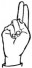 На ћирилици написано ИВА КОМАРНИЧКИ састоји се из 13 слова [?]. Исписано ћириличном једноручном азбуком за глувонеме:
